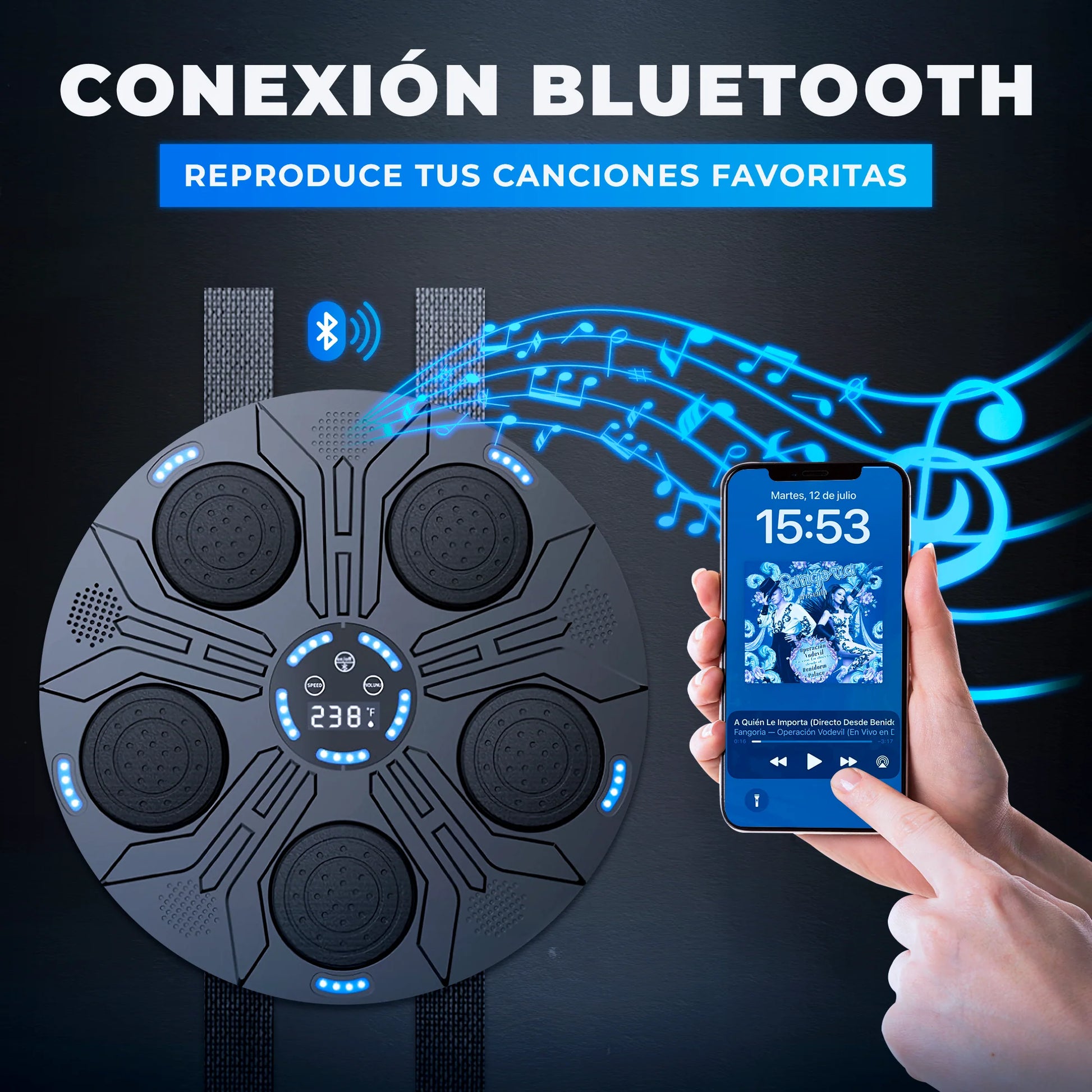 Cada golpe se sincroniza con la música y las luces LED, haciendo que tu entrenamiento sea dinámico, adictivo y lleno de energía.